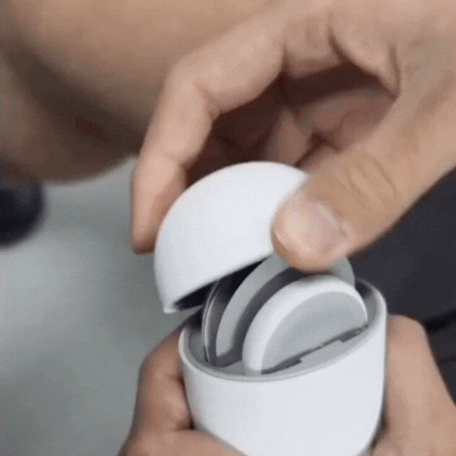 Open de case, pak de pods eruit en klik ze vast met de plakkers zodat ze goed blijven zitten.
